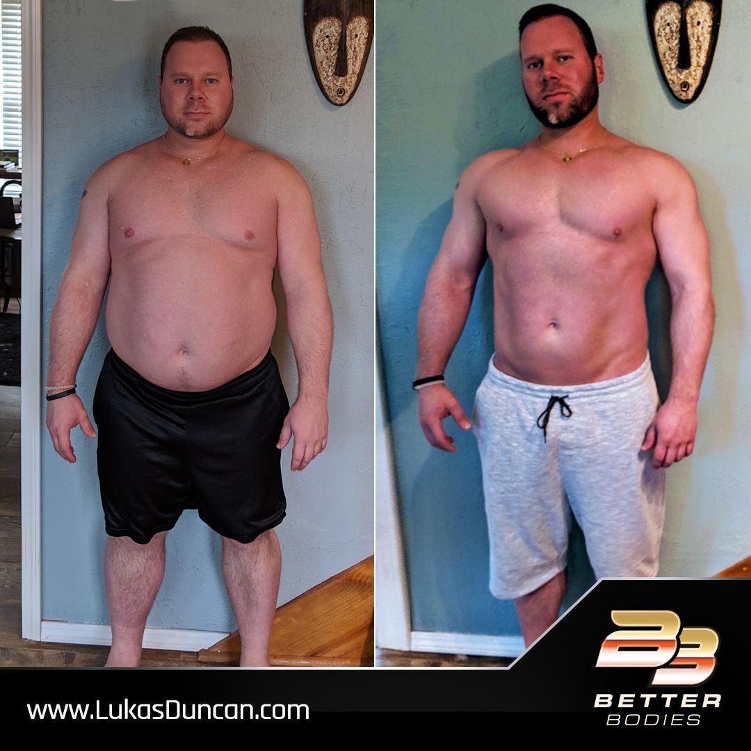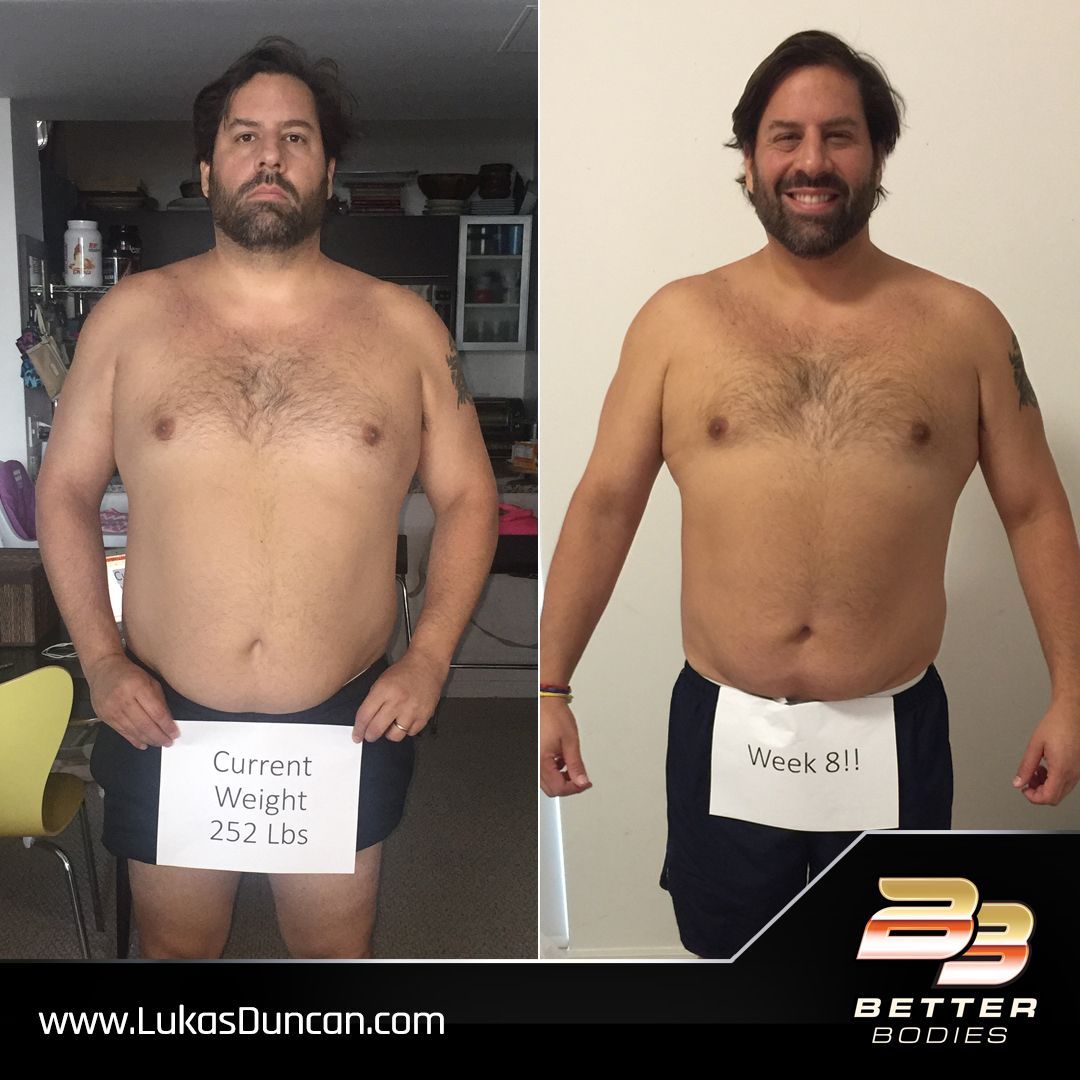"Lukas I finished my 8 weeks today. Weighing in at exactly 250. I lost a solid 40 lbs and 7 inches off my waist. I hired you for another year, so this is just my starting point. I had a t